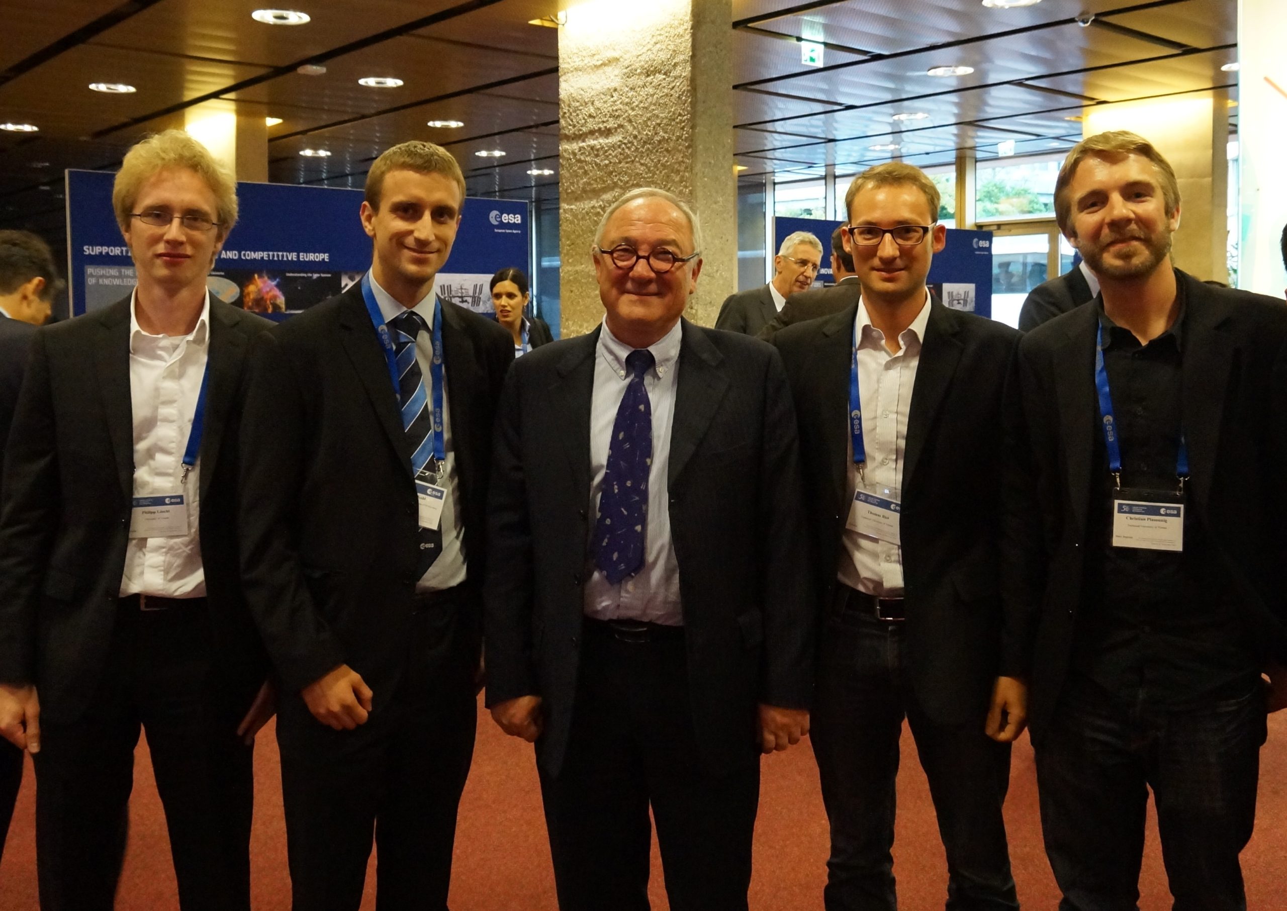Das Ende der Mittagspause nutzten wir um neue Kontakte zu knüpfen. Dazu hatten wir die Oberstufe von STR-04 dabei, die wir stolz präsentierten. Am Nachmittag hörten wir hochrangige ESA Wissenschaftler und den Nobelpreisträger für Physik von 2011, Brian Schmidt, der zum Thema „The impact of space activities on science“ referierte. Bei allen Vorträgen und Diskussionen stand natürlich auch die aktuelle Rosetta Mission im Mittelpunkt und man konnte den Stolz der ESA auf die bis jetzt so erfolgreiche Mission nicht übersehen. Zum Abschluss sprach noch der Directeur Général der ESA, Jean-Jacques Dordain, über Rückschläge und Erfolge in der Raumfahrt.