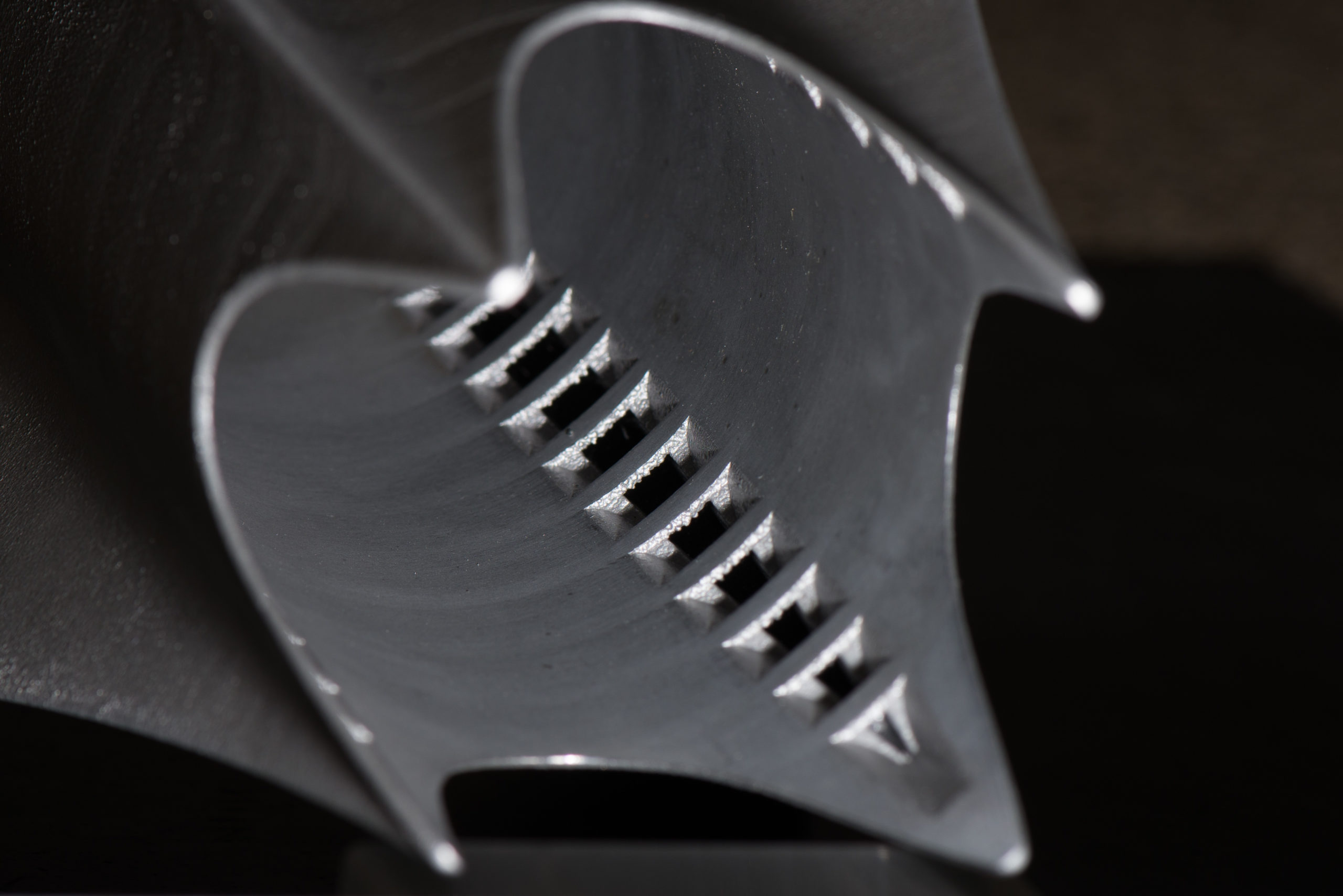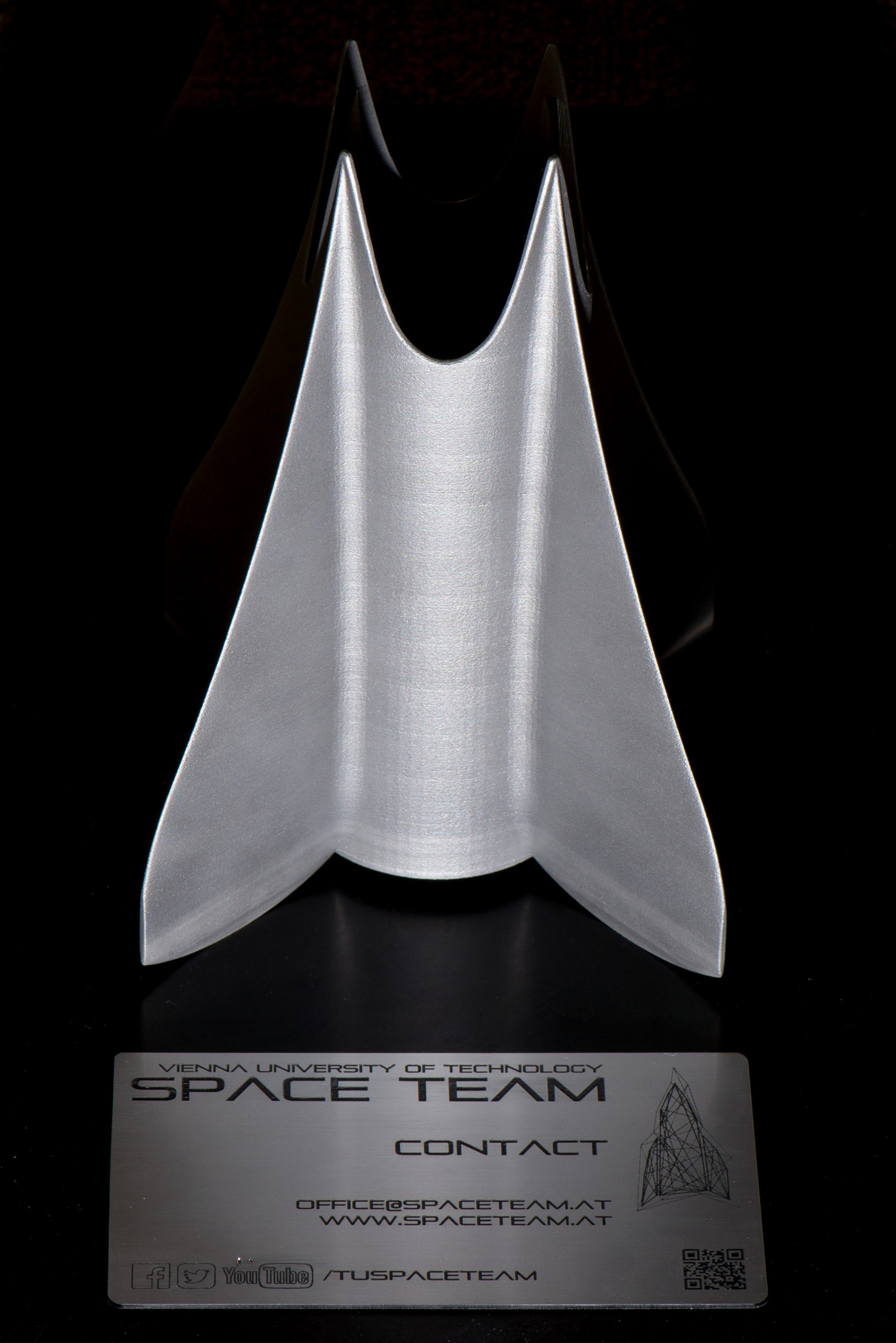 Die Finnen wurden im sogenannten DMLS (Direct Metal Laser Sintering) Verfahren 3D-gedruckt. Durch die von uns konstruierte Isogrid-Struktur im Inneren der Finnen, sind diese bei gleicher Festigkeit so leicht wie Carbon-Faserverbundwerkstoff und so widerstandsfähig wie Metall. Besonders die Hitzebeständigkeit und Wärmeleitfähigkeit sind für unsere Flüge jenseits von Mach 4 unerlässlich.