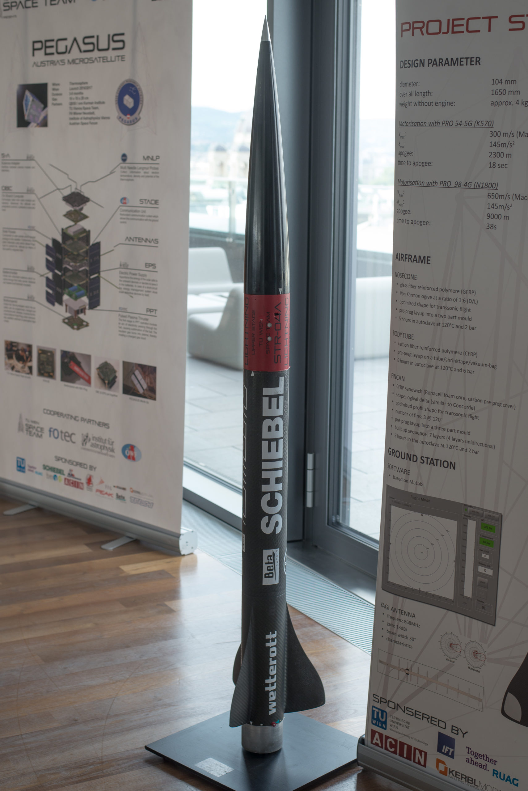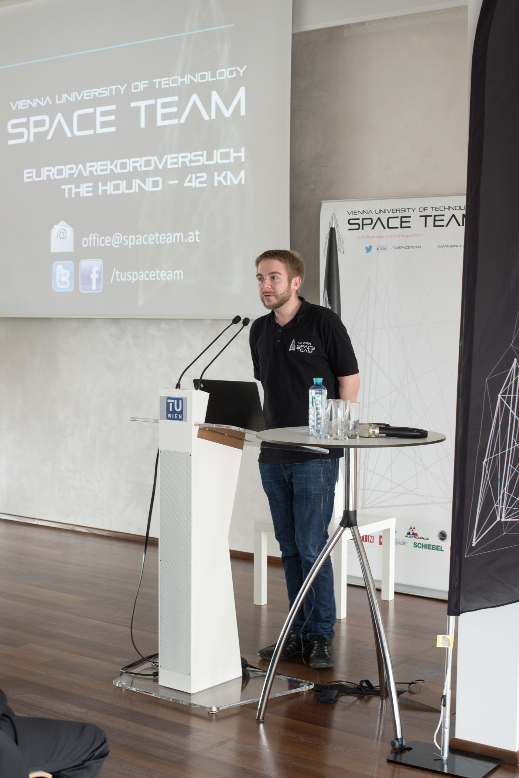 Der Schwerpunkt lag bei unserem Europarekordprojekt „The Hound“ und dazu präsentierten wir gemeinsam mit unserem Sponsor Airbus das erste aus Aluminium 3D-gedruckte Raketenleitwerk. Außerdem gab es Infos zum Cubesat-Projekt PEGASUS,den Rollout der neuen Rakete für den Bewerb in Frankreich (STR-06), Neuigkeiten zum Mondlandemodul und eine erste Präsentation zum Triebwerksprojekt.