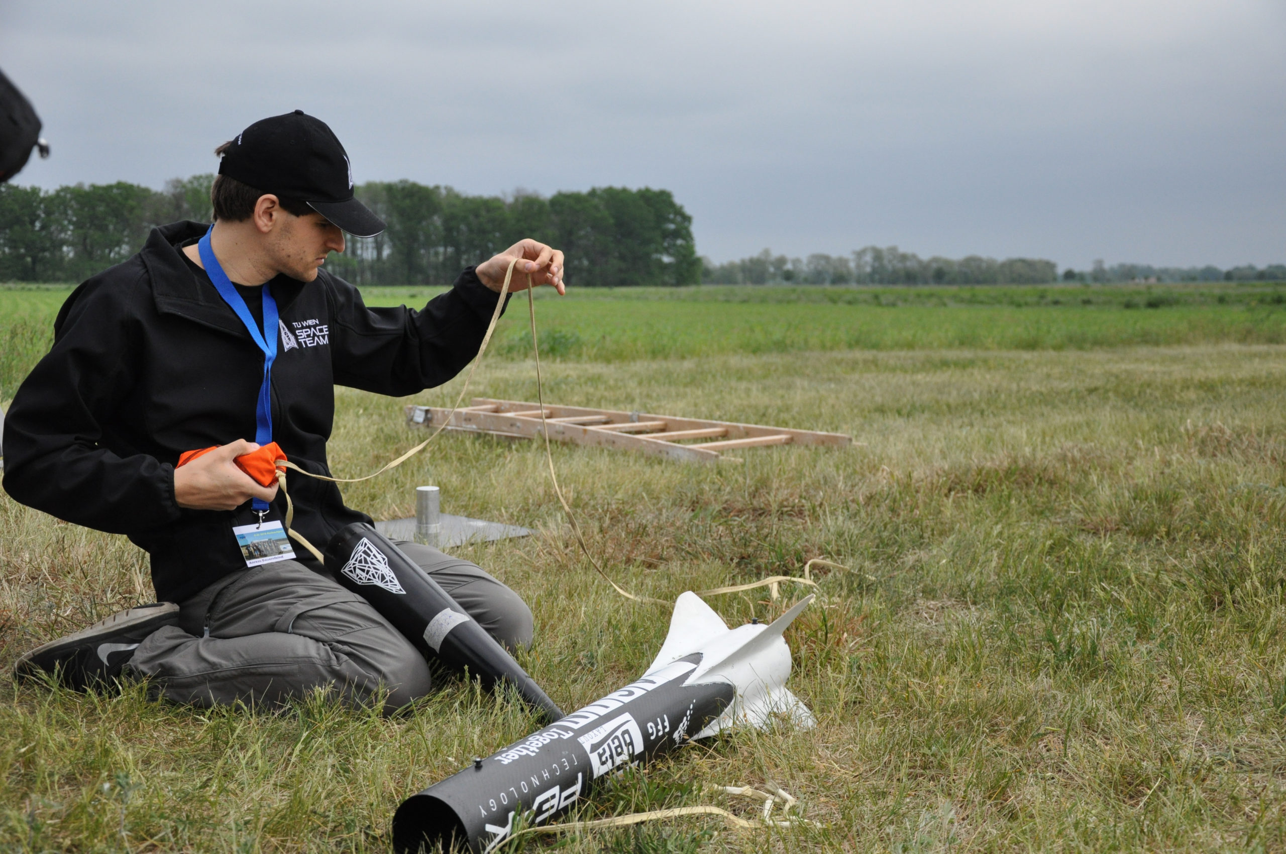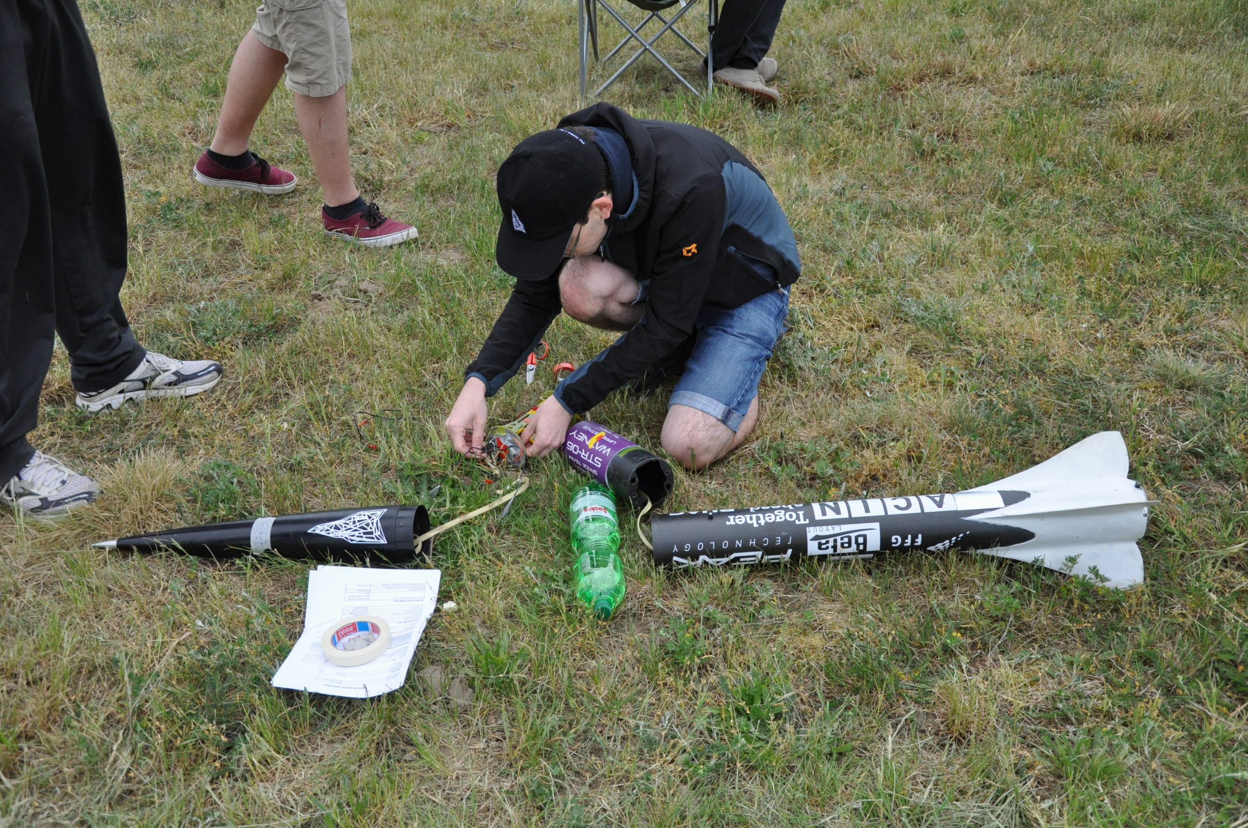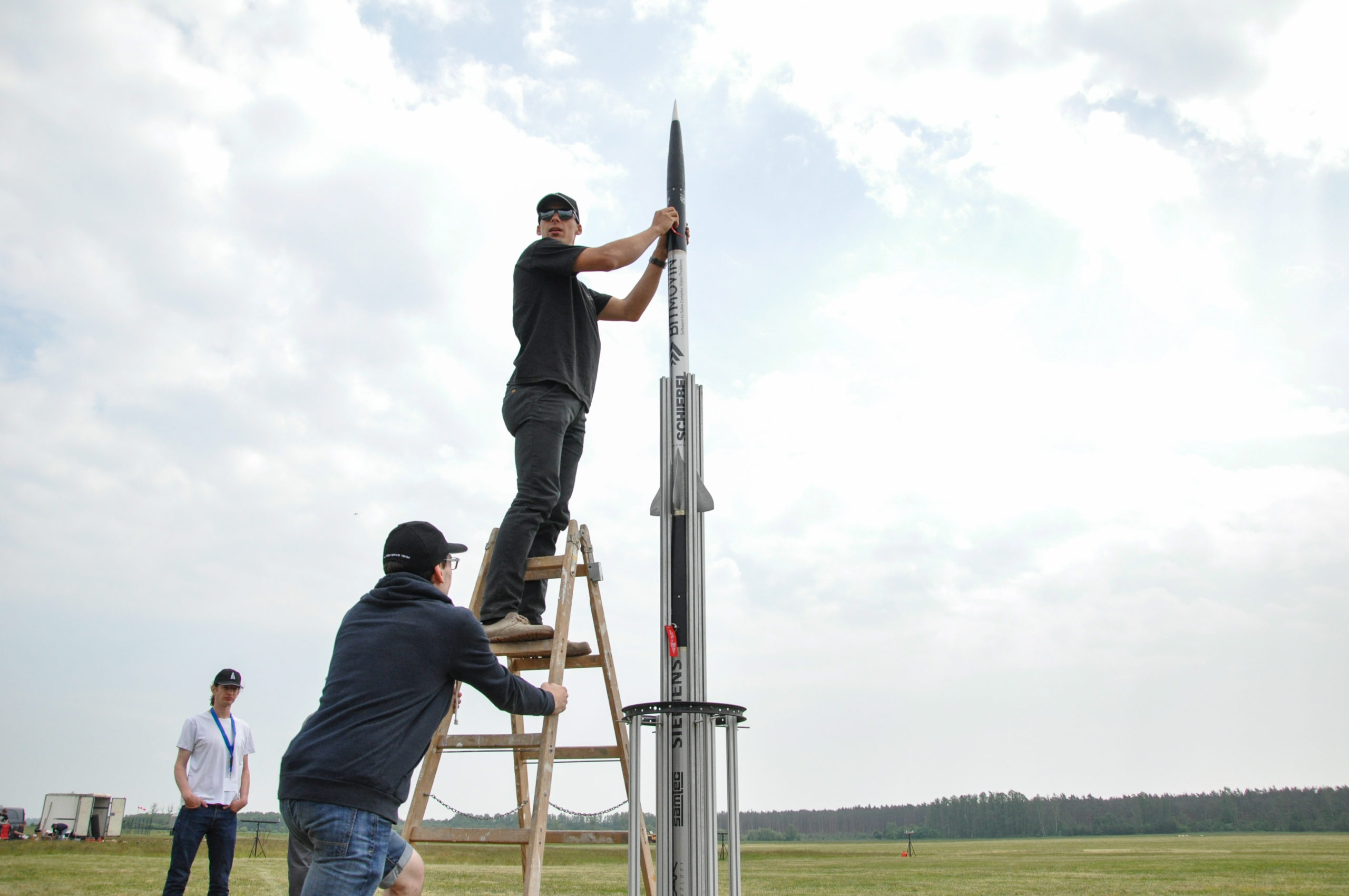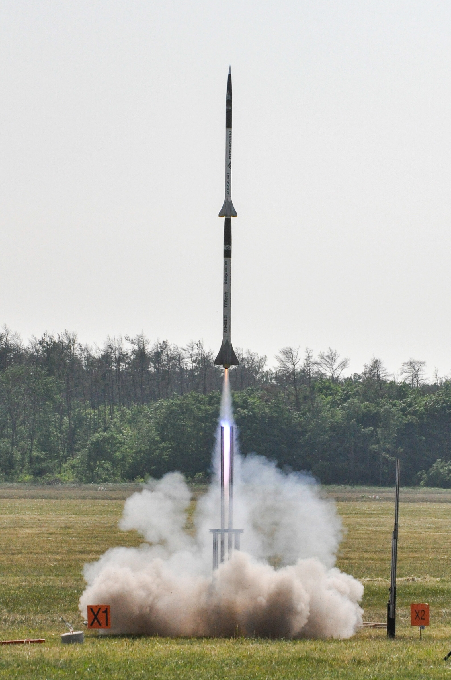 An den Start brachte unser achtköpfiges Team die zuverlässige STR-06 und die zweistufige The Hound. Ziel war es, beide Raketen mit der aktuellen Elektronik zu fliegen und die Systeme auf Herz und Nieren zu testen. The Hound sollte dabei möglichst nahe an der finalen Konfiguration für den Rekordversuch starten.