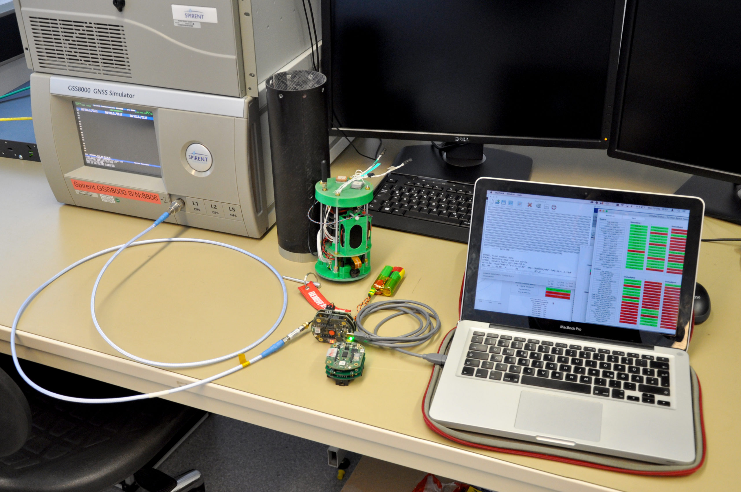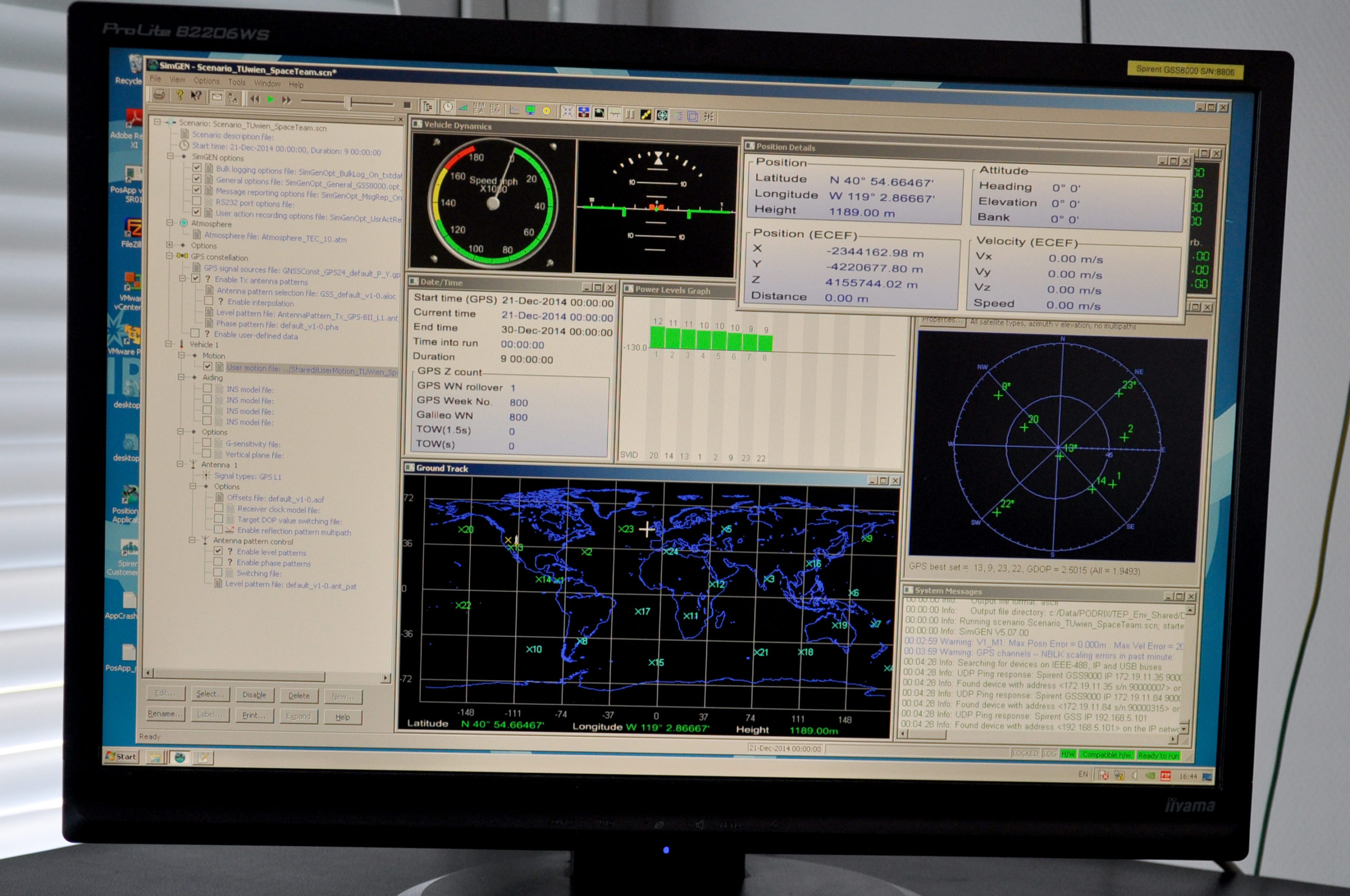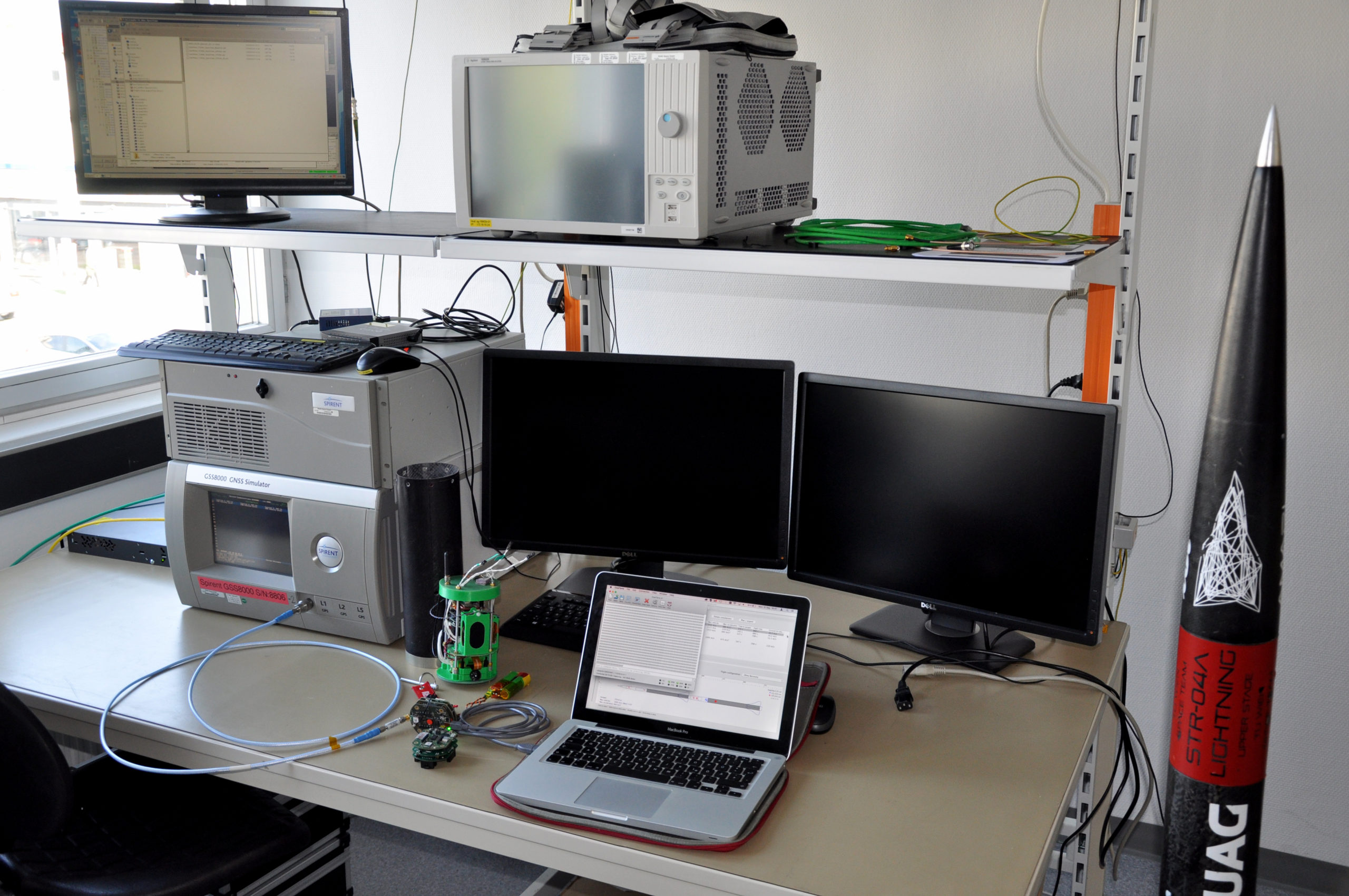 Diese Frage wollten wir mithilfe eines GNSS-Simulators beantworten, den wir bei RUAG Space Austria dankenswerter Weise verwenden durften. Dieser Simulator wird anstatt der GNSS-Antenne an das Modul angeschlossen und simuliert die empfangenen Satellitensignale. Dabei kann eine beliebige Trajektorie des Vehikels, Satellitenkonstellationen, Atmosphärenmodell uvm. simuliert werden. Für unseren Testfall hatten wir aus dem Simulationsprogramm OpenRocket verschiedene Trajektorien erstellt: Einen Testfall für einen Flug unterhalb den Limits und einen Testfall, wo diese Limits überschritten werden.