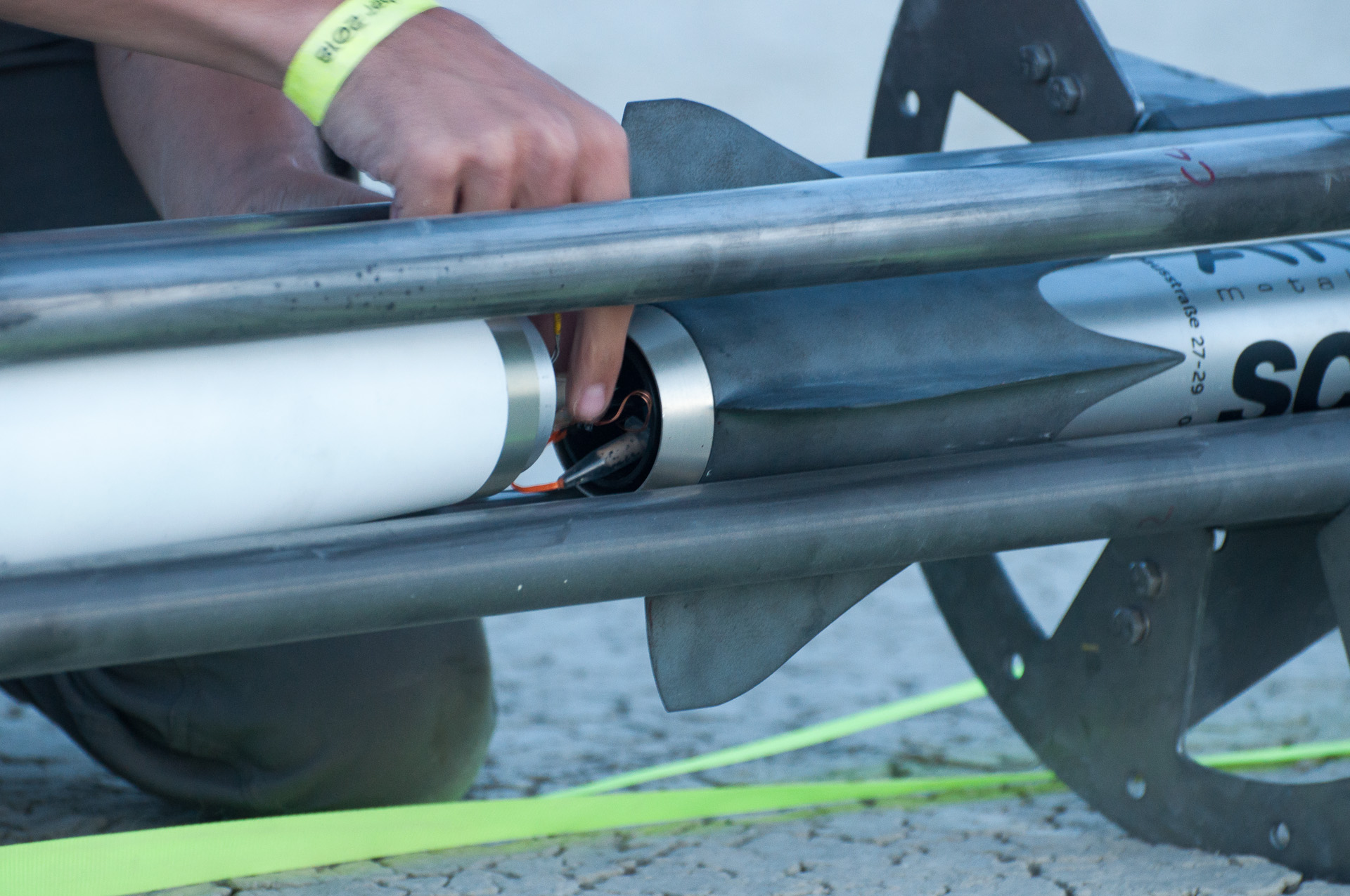 An diesem Wochenende sind bei anderen Teams zwei schwere Unfälle passiert, bei denen ein Mensch schwer verletzt wurde. Diese Unfälle waren auf falsches Handling der Pyrotechnik der Oberstufe von zweistufigen Raketen zurückzuführen. Dies unterstreicht wie wichtig ein sorgsamer Umgang mit der Pyrotechnik bei zweistufigen Raketen ist. Mit unserem Konzept hoffen wir das Risiko auf ein Minimum zu reduzieren.