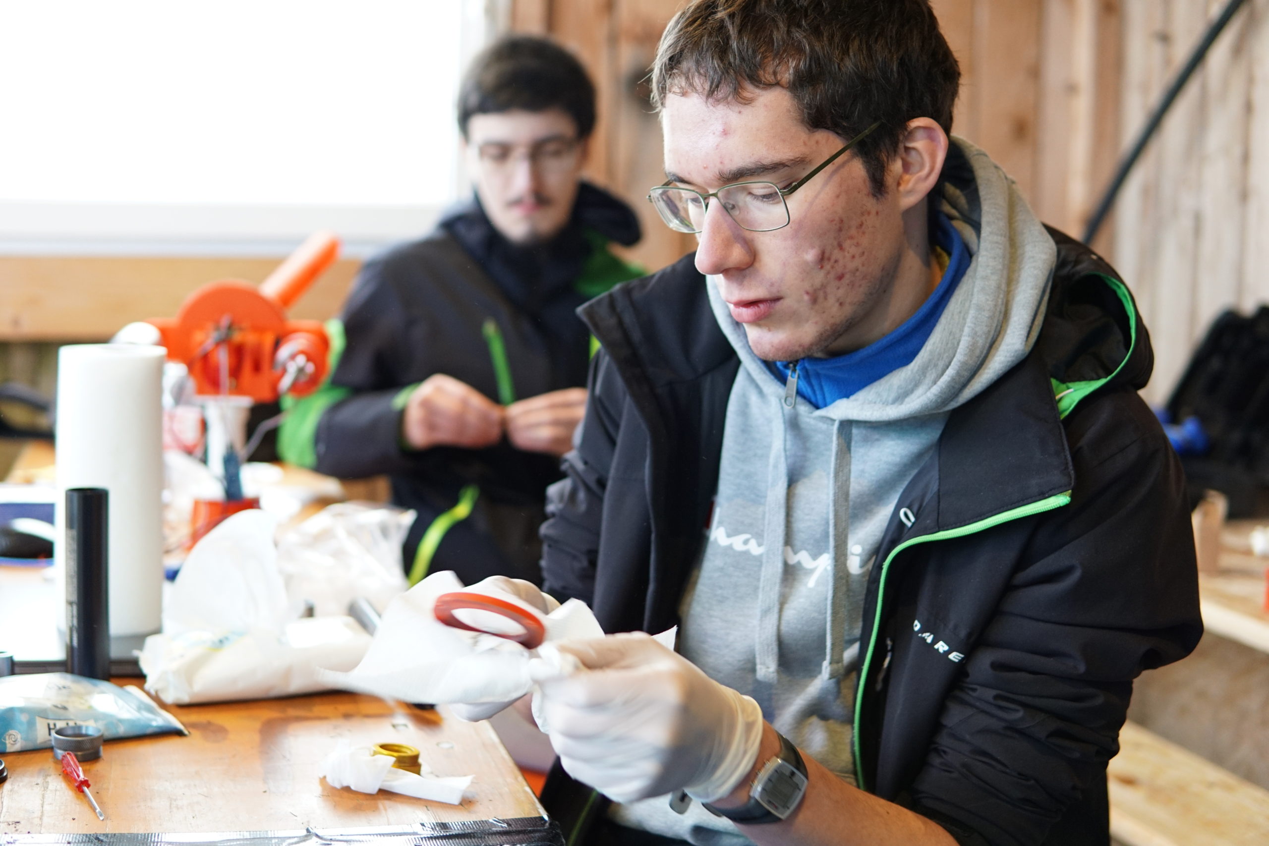 Am Morgen fröstelte es noch etwas, aber die Space Team-Novizen waren hochmotiviert. Vor Ort machten wir uns direkt an den Aufbau der Startrampe. Die Teams trafen die letzten Vorkehrungen und steckten ihre Raketen zusammen. Unmittelbar darauf starteten wir die ersten Raketen und sahen gebannt in den Himmel. Einige von uns filmten die Raketenstarts für eine spätere Analyse.