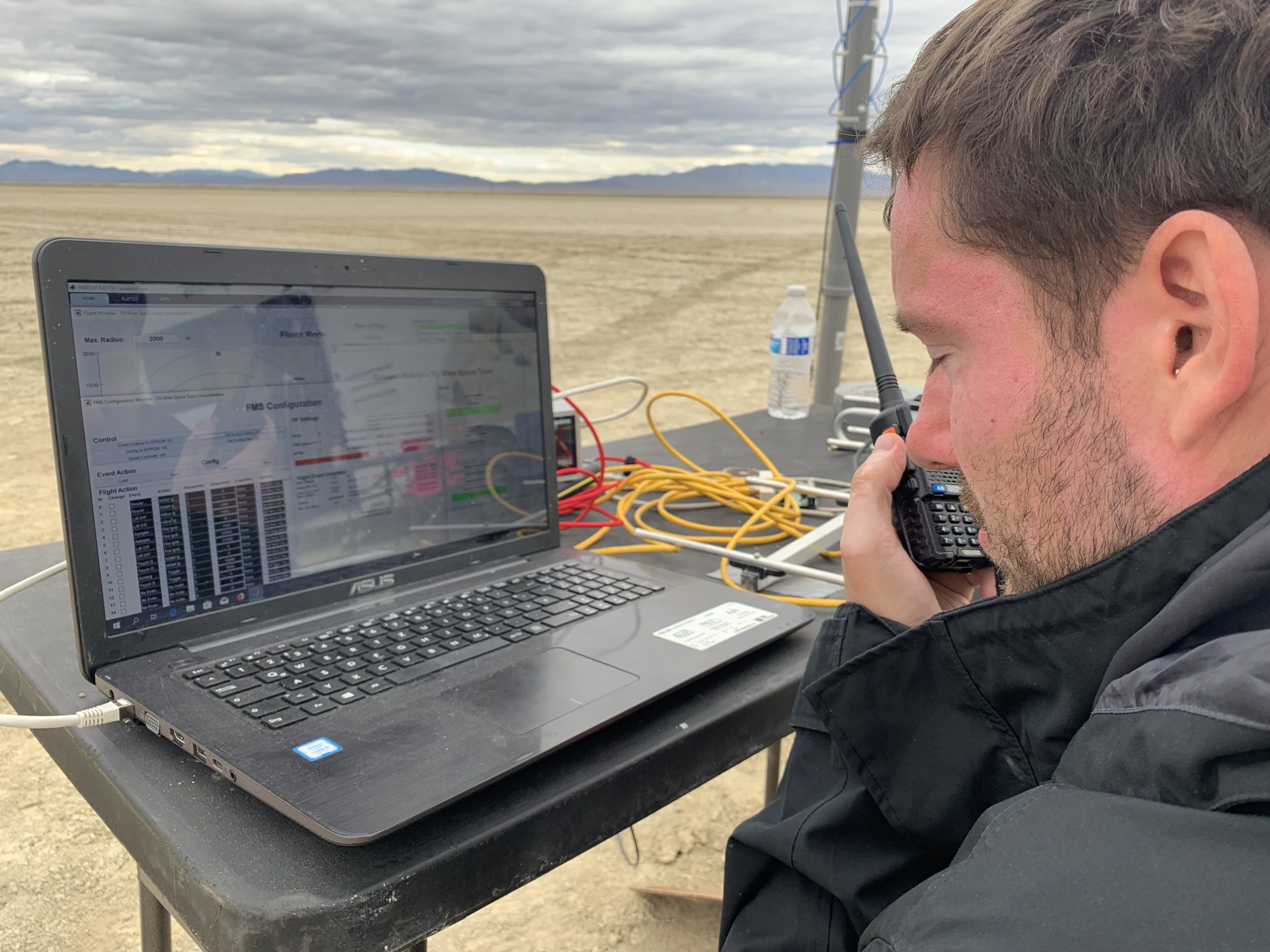 Vorsorglich war der Projektleiter und Elektronik-Chef Christoph Fröhlich gleich in die Away Cell mitgekommen – aus kürzerer Entfernung klappte diesmal auch der Funk, die Vermutung, dass der ungewöhnlich feuchte Wüstenboden die Verbindung störte, bestätigte sich.