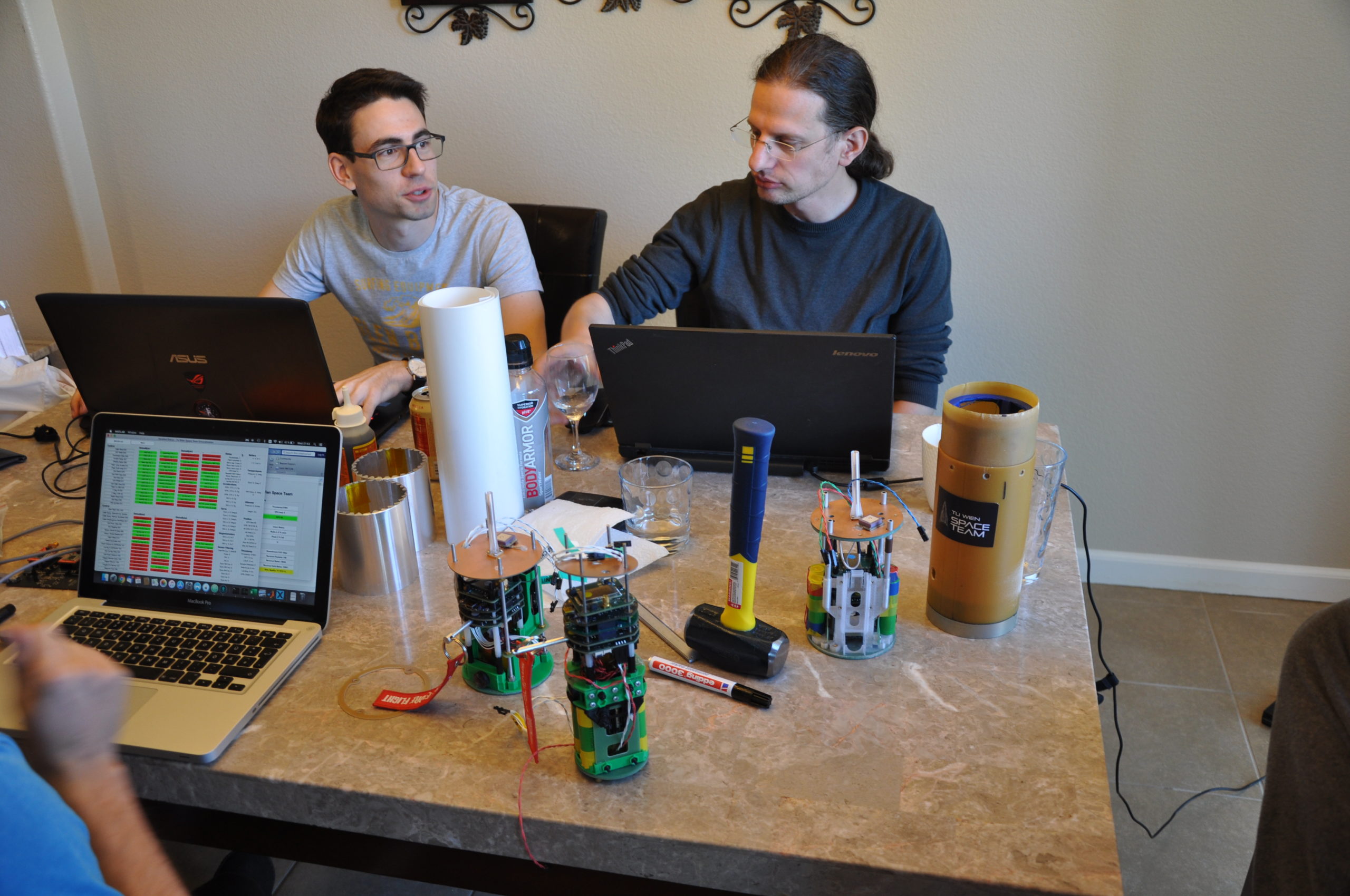 Die Elektronikabteilung war indessen alles andere als unterbeschäftigt: Bodenstationen wurden vorbereitet, Elektronik-Stacks der Raketen auf Transportschäden überprüft und auch die Software wollte noch optimiert werden. Das gesamte Team half mit wo es nur möglich war und die weniger Beschäftigten übernahmen häusliche Tätigkeiten wie Einkäufe, die Zubereitung des Abendessens oder spielten (in ganz seltenen Fällen) eine Partie Billard.