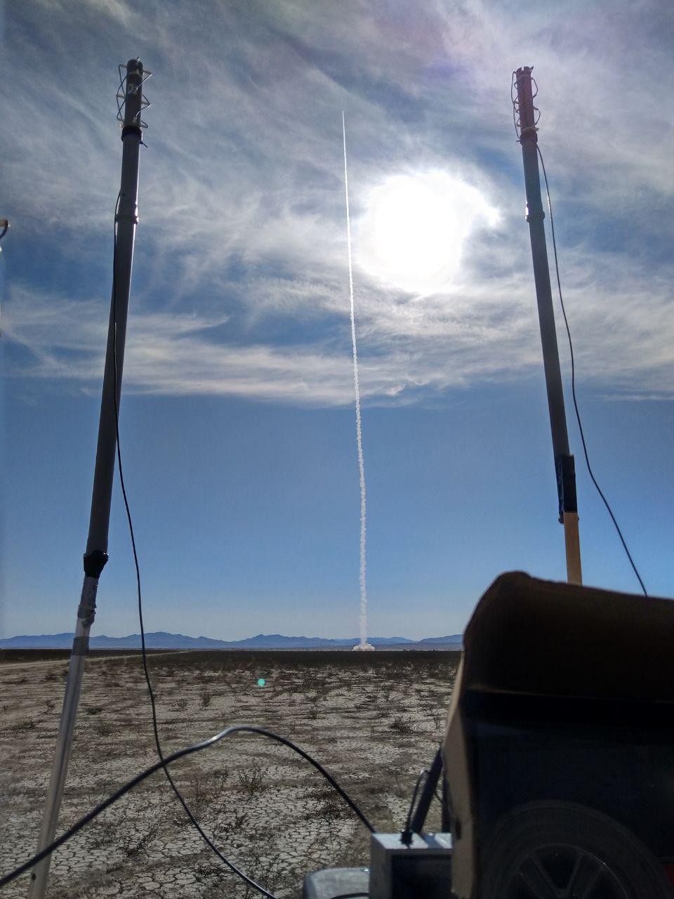 Die Booster-Stufe zündete und “The Hound 2” strebte gerade wie ein Strich dem Himmel entgegen. Leichte Bewölkung behinderte zuerst die optische Nachverfolgung durch uns Beobachter und sehr bald folgte die erste Ernüchterung. Die ausbleibende Linie aus Rauch hoch oben am Himmel, die die erfolgreiche Zündung der Oberstufe signalisiert hätte, blieb aus. Die Daten, die wir empfangen konnten, zeichneten ein noch schlechteres Bild vom Flugverlauf. Bald war der Kontakt ganz abgerissen, die letzte GPS Position des Boosters irgendwo in 6km Höhe, der Sustainer laut kommerziellem GPS-Modul schon am Boden…jetzt schon?