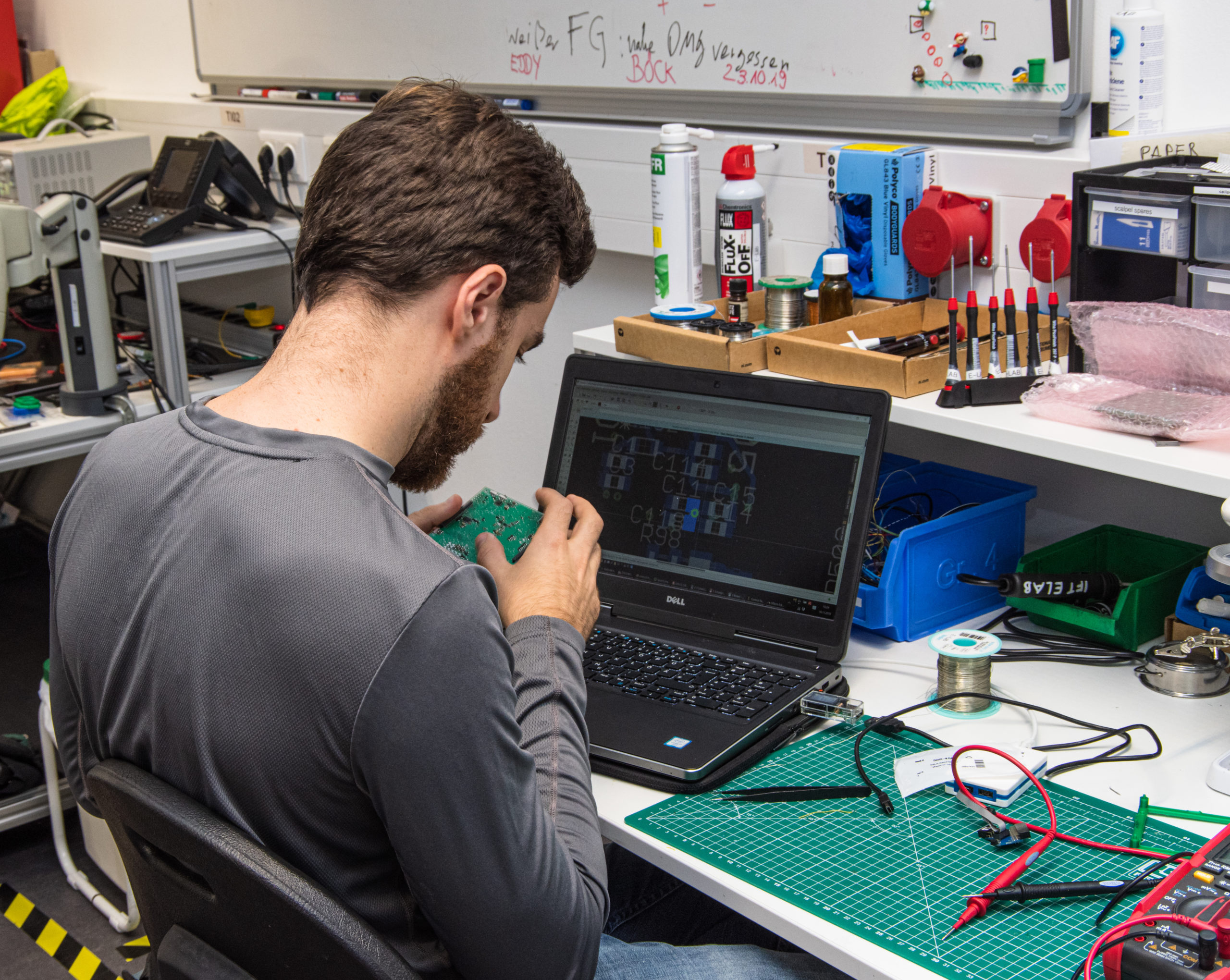 Nach einer Kennenlernrunde und einer allgemeinen Einführung in die Grundlagen des CubeSats, wurden die Teams für das Wochenende erstellt. Für jedes Subsystem gab es einen dezidierten Arbeitsplatz an dem dann gearbeitet wurde. Zudem wurde die Grundlagen für das Testing Concept und das automatisierten Testen der Subsysteme geschaffen.