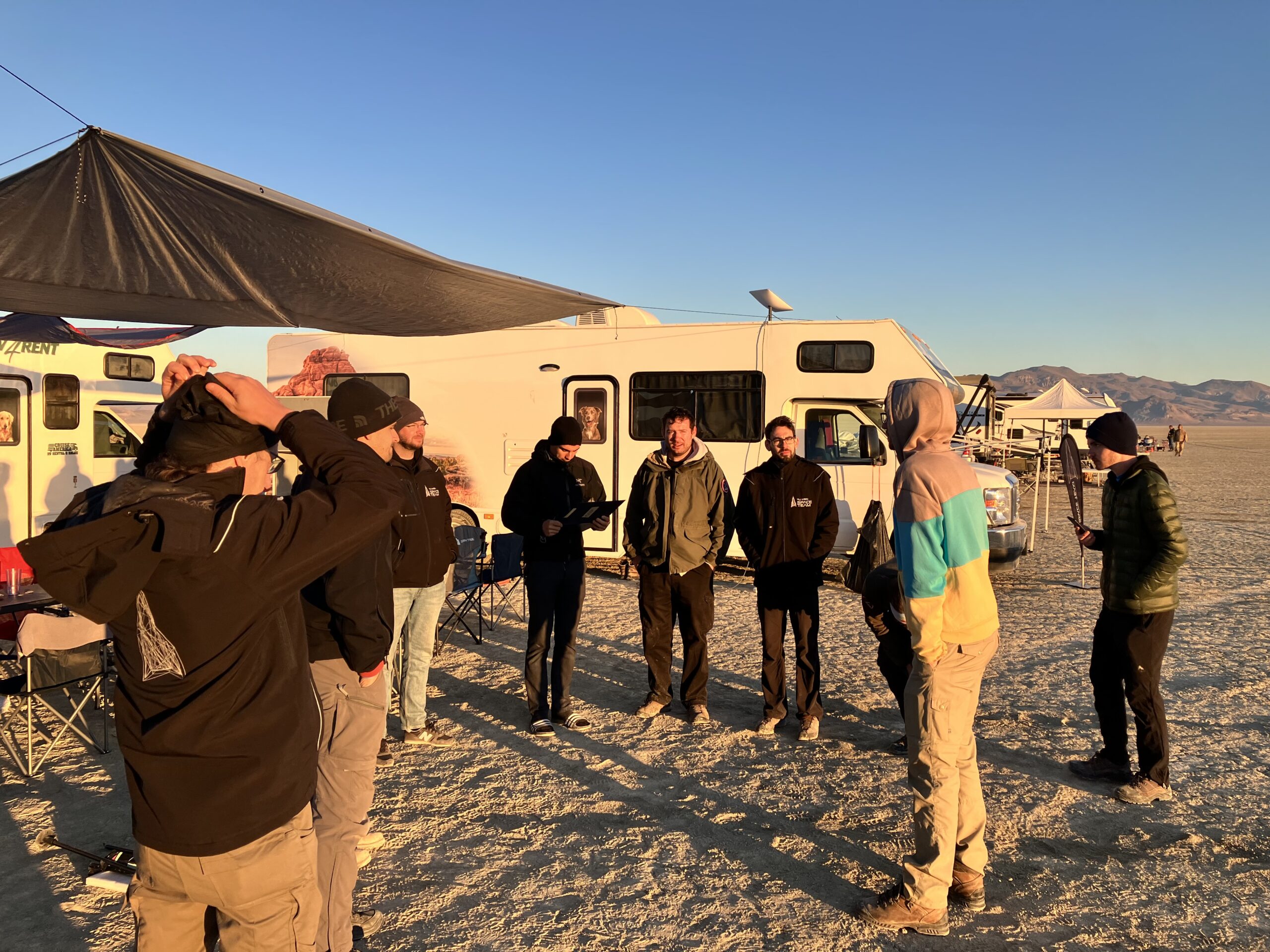 Wie auch die Jahre zuvor hatten wir Reno/NV als Standort für die Vorbereitungen ausgewählt. Schon ein Monat zuvor hatten wir die ganze Hardware per Spedition verschickt, dennoch gab es große Verzögerungen beispielsweise durch Rückfragen des Zollamts. Die Lieferung kam aber rechtzeitig an, und wir konnten die Zeit für Vorbereitungen gut nutzen: Auspacken, letzte Pre-Flight Checks, Vorbereiten der Pyrotechnik, Organisation der Verpflegung für die Wüste und vieles mehr stand am Programm.