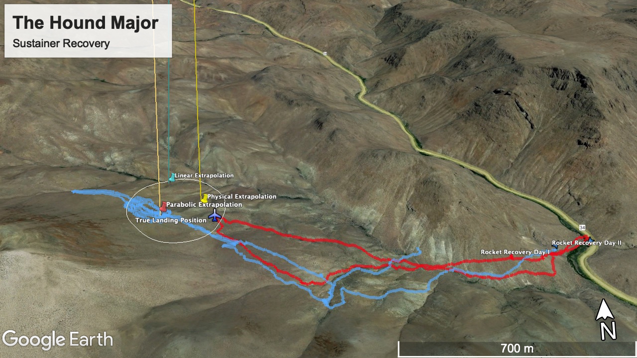 Da die Unterstufe erneut nominal am Fallschirm gelandet war, konnte diese wiederum rasch geborgen werden. Die Oberstufe landete jedoch ballistisch, d.h. ohne Fallschirm, und die genauen Landekoordinaten waren unbekannt. Basierend auf den letzten via Funk erhaltenen Koordinaten wurden mögliche Landepunkte berechnet. Am ersten Tage hatte der Suchtrupp keinen Erfolg, erst nach einer nächtlichen Neubewertung der Daten konnte der Suchtrupp die Oberstufe am nächsten Tag bergen: lediglich 100 m entfernt von einem der berechneten möglichen Landepunkte.